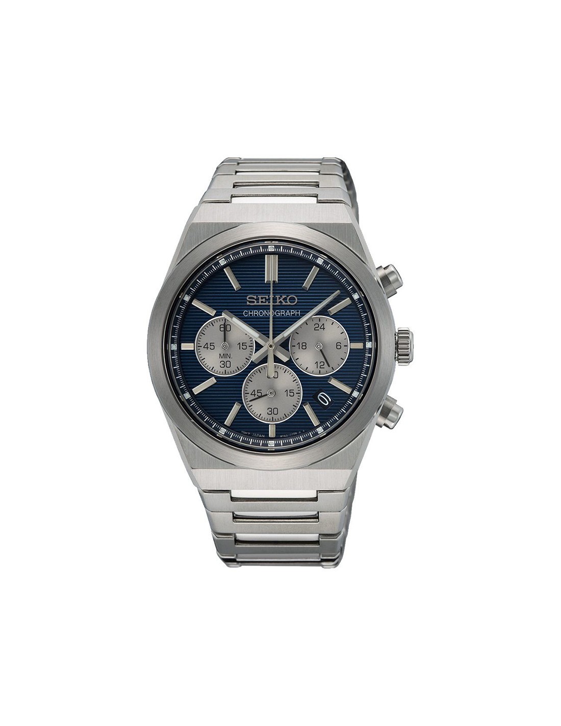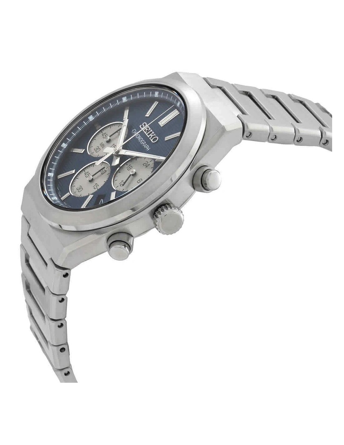 La caja del reloj tiene un diámetro de 40 mm aproximadamente. Cristal Zafiro y movimiento de cuarzo. Esfera azul con calendario. Pulsera de acero plateada con cierre tipo broche desplegable. Tiene una resistencia al agua de 100 metros (10ATM). Cuenta con la garantía oficial Seiko de 24 meses. Se entrega con su caja oficial.