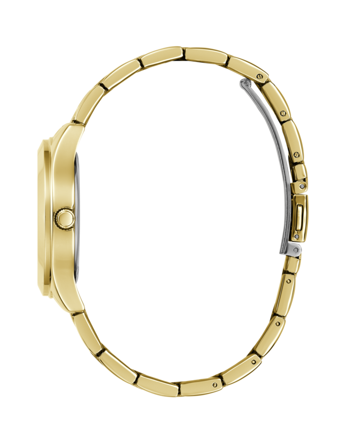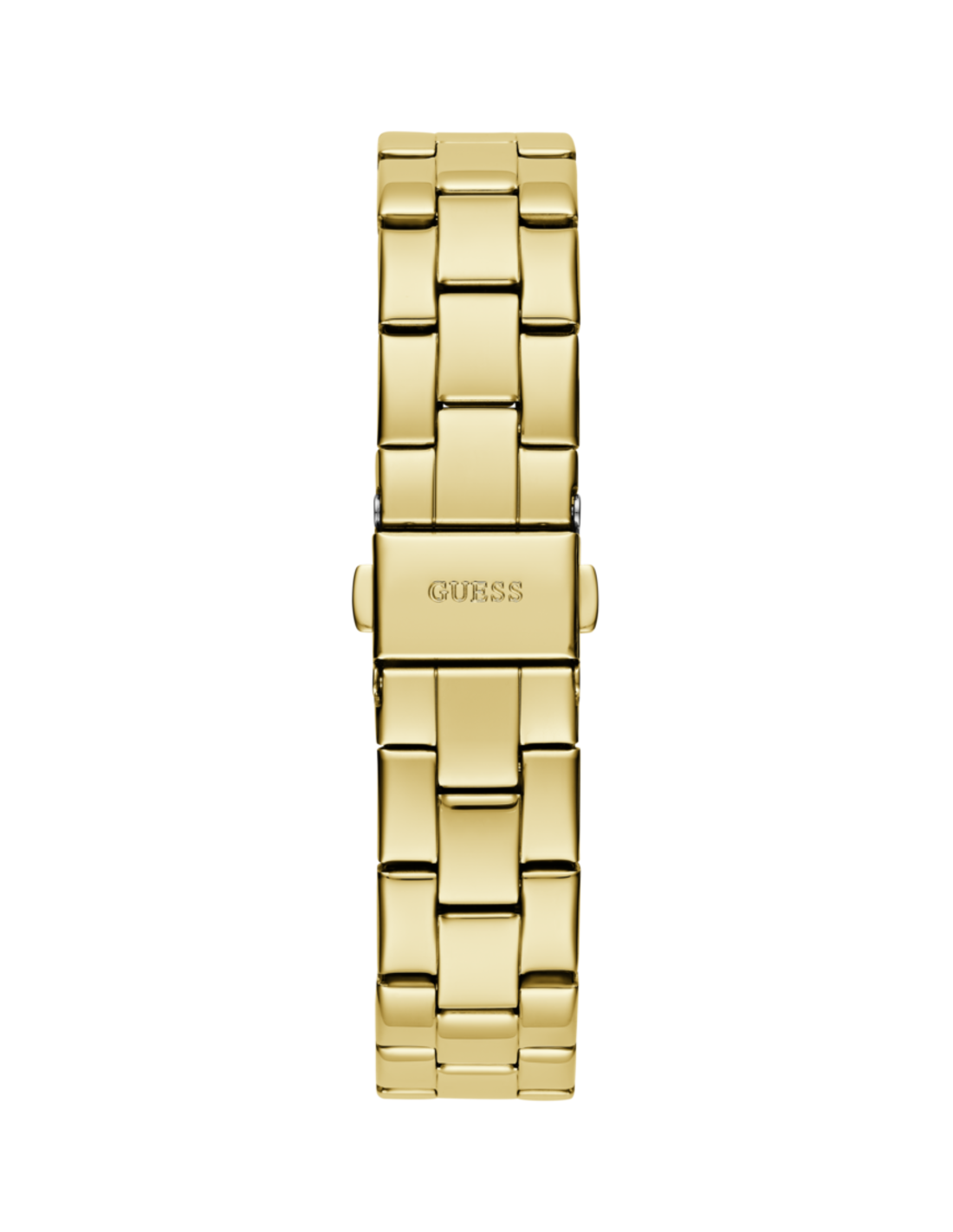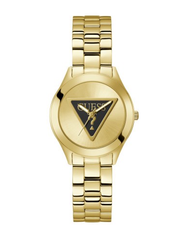 La caja del reloj tiene un diámetro de 34 mm aproximadamente. Cristal mineral y movimiento de cuarzo. Esfera color dorado y pulsera dorada de acero con cierre tipo broche desplegable. Tiene una resistencia al agua de 30 metros (3ATM). Cuenta con la garantía oficial Guess de 24 meses. Se entrega con su caja oficial.
