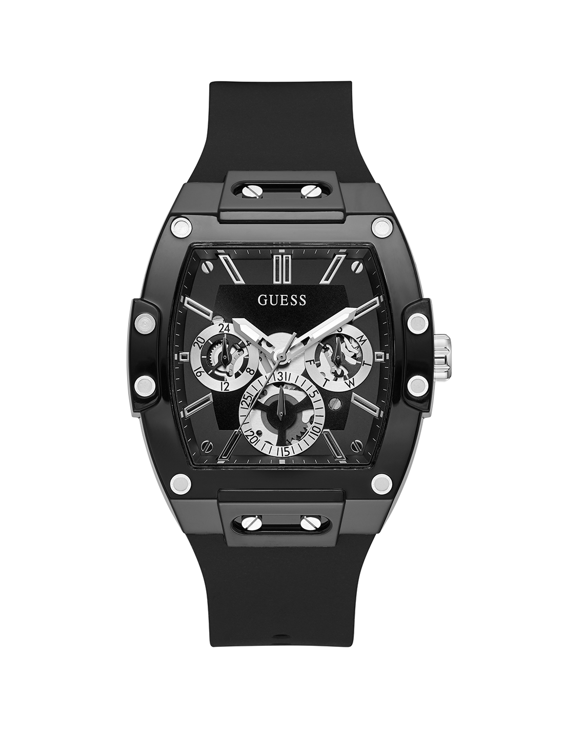 Reloj para hombre marca Guess colección Phoenix. Se trata de un reloj analógico con caja rectangular de policarbonato.