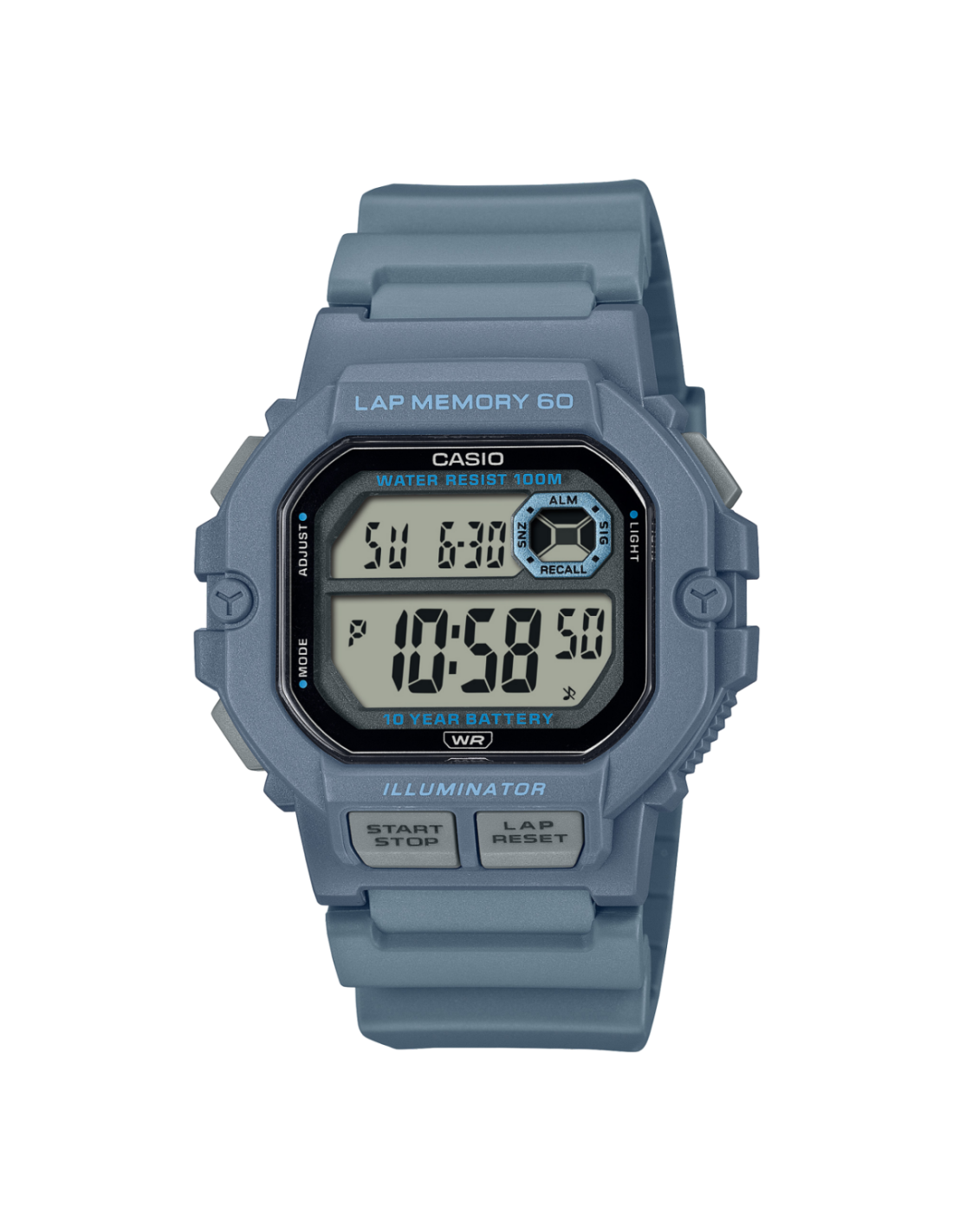 Entre sus funciones destacan las mediciones de tiempo con memoria de hasta 60 registros, cronómetro, alarma, y luz. Es resistente al agua 100m y cuenta con la garantía oficial Casio de 36 meses. Se entrega con su caja oficial.