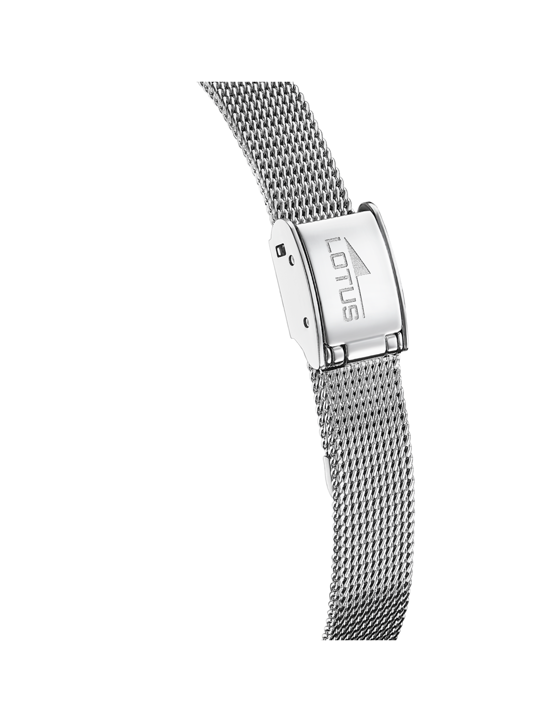 Se trata de un reloj analógico con caja redonda de acero inoxidable. La caja del reloj tiene un diámetro de 25 mm aproximadamente. Cristal mineral y movimiento de cuarzo. Pulsera malla milanesa con cierre tipo broche. Tiene una resistencia al agua de 50 metros (5ATM). Cuenta con la garantía oficial Lotus de 24 meses. Se entrega con su caja oficial.