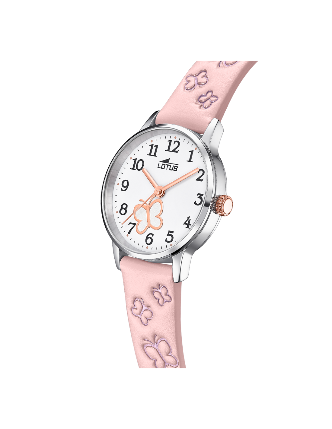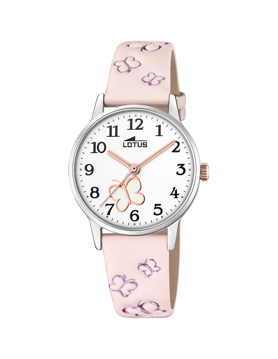Reloj para niña fabricado en acero marca Lotus colección Junior Collection. Esfera y correa con mariposas. Reloj ideal para comunión. Por la compra de este reloj de la colección Junior, te regalamos una pulsera.