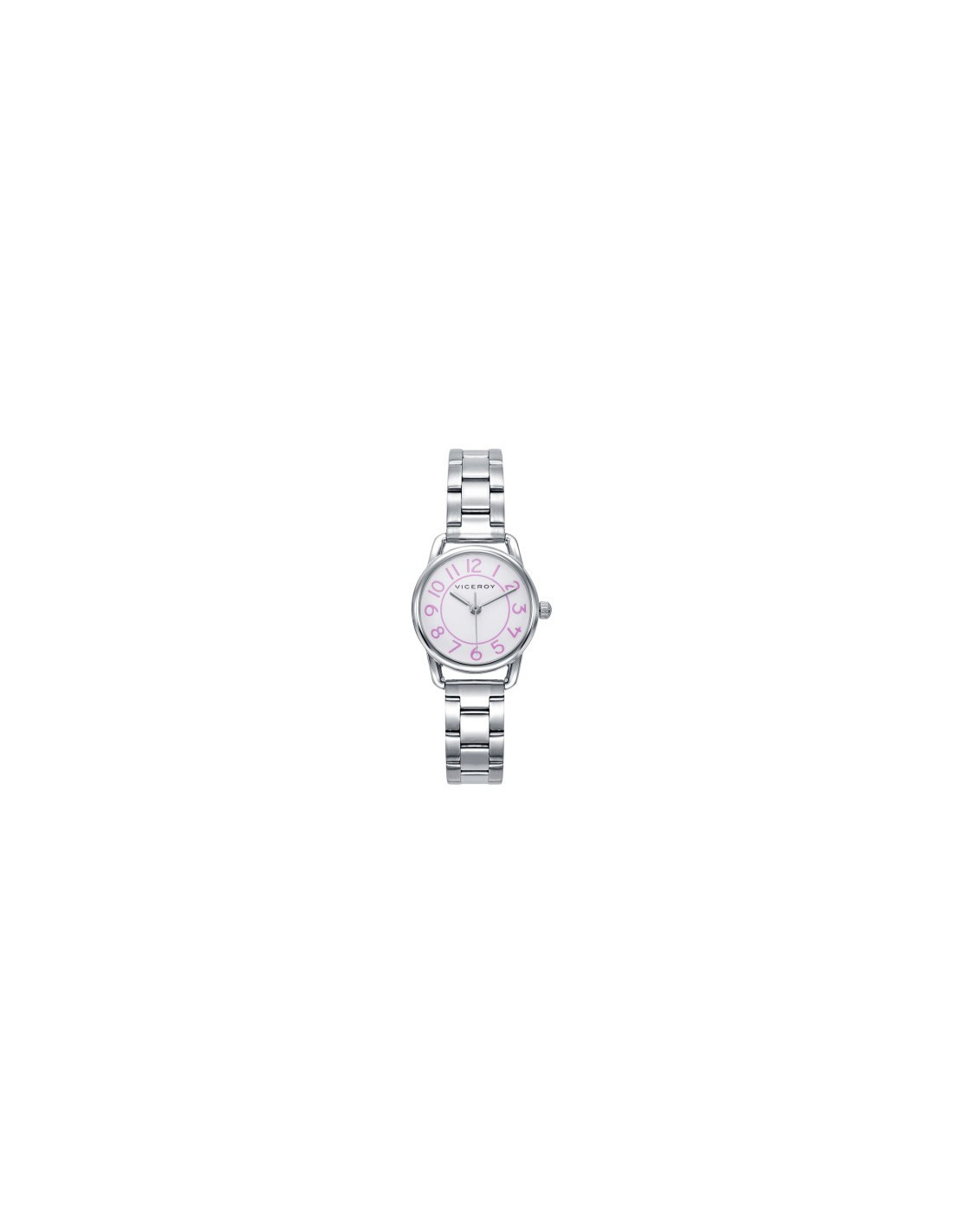 Se trata de un reloj analógico con caja redonda de acero inoxidable color plateado. La caja del reloj tiene un diámetro de 26 mm. Cristal mineral y movimiento de cuarzo. Pulsera de acero de eslabones con cierre tipo broche desplegable. Tiene una resistencia al agua de 50 metros (5ATM). Cuenta con la garantía oficial Viceroy de 24 meses. Se entrega con su caja oficial.