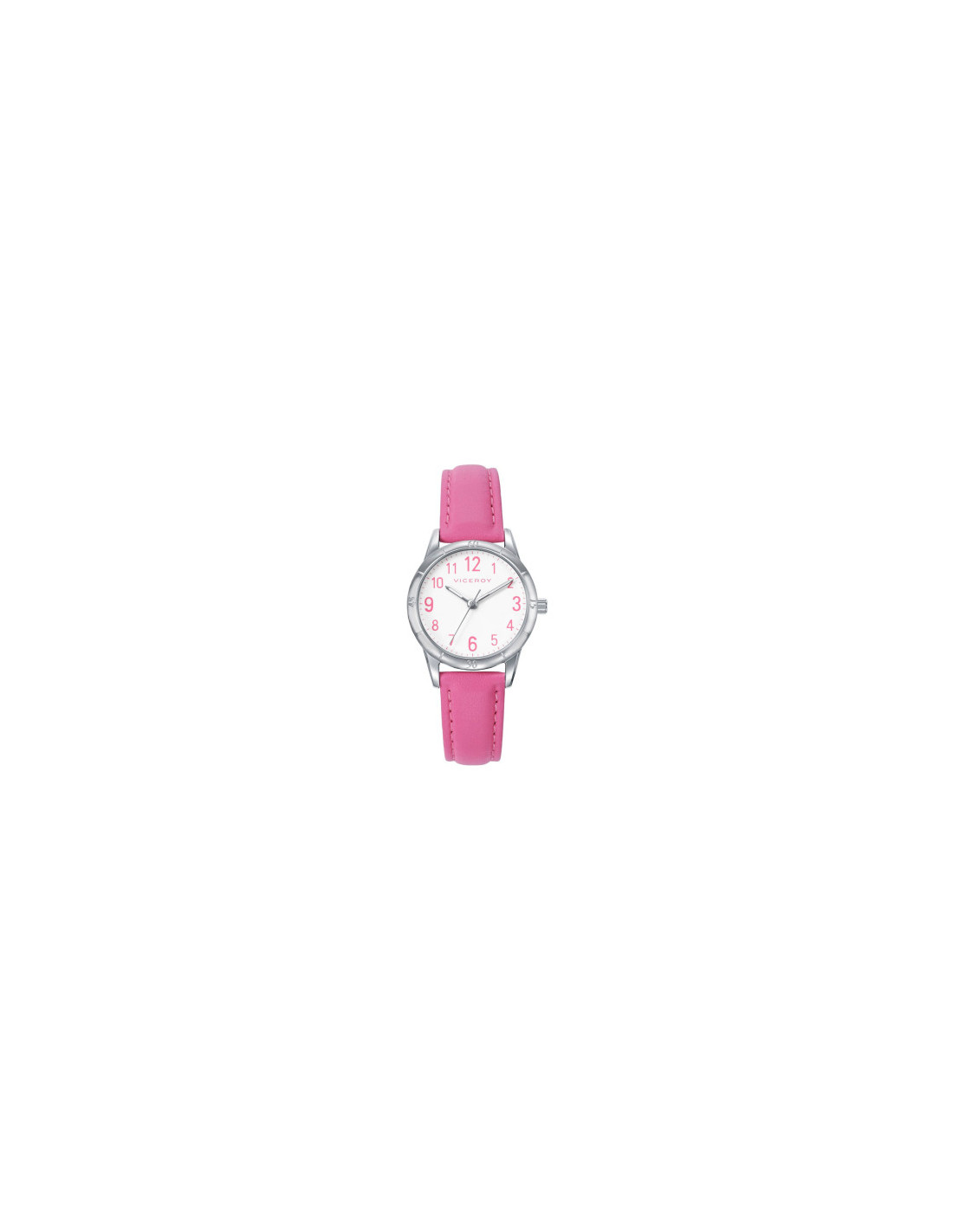 Se trata de un reloj analógico con caja redonda de acero inoxidable color plateado. La caja del reloj tiene un diámetro de 28 mm. Cristal mineral y movimiento de cuarzo. Correa rosa con cierre tipo hebilla. Tiene una resistencia al agua de 30 metros (3ATM). Cuenta con la garantía oficial Viceroy de 24 meses. Se entrega con su caja oficial.