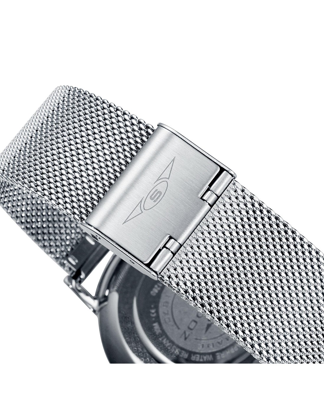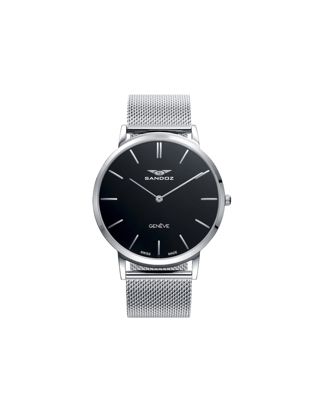 Reloj suizo para hombre fabricado en acero con malla milanesa y cristal zafi
