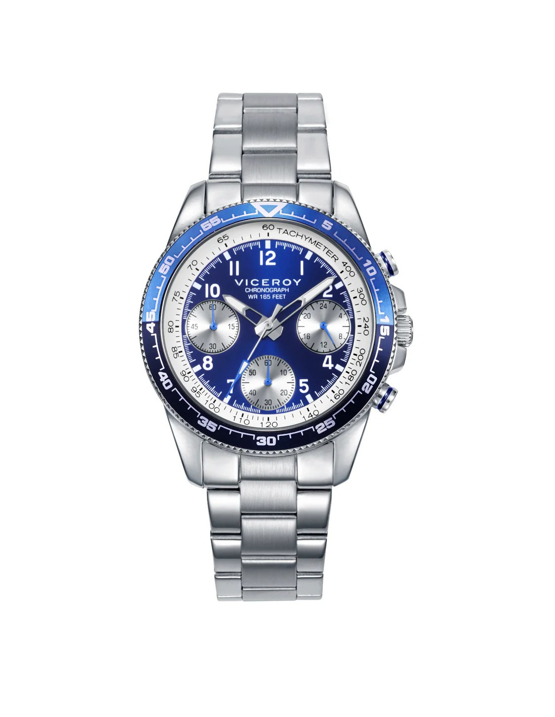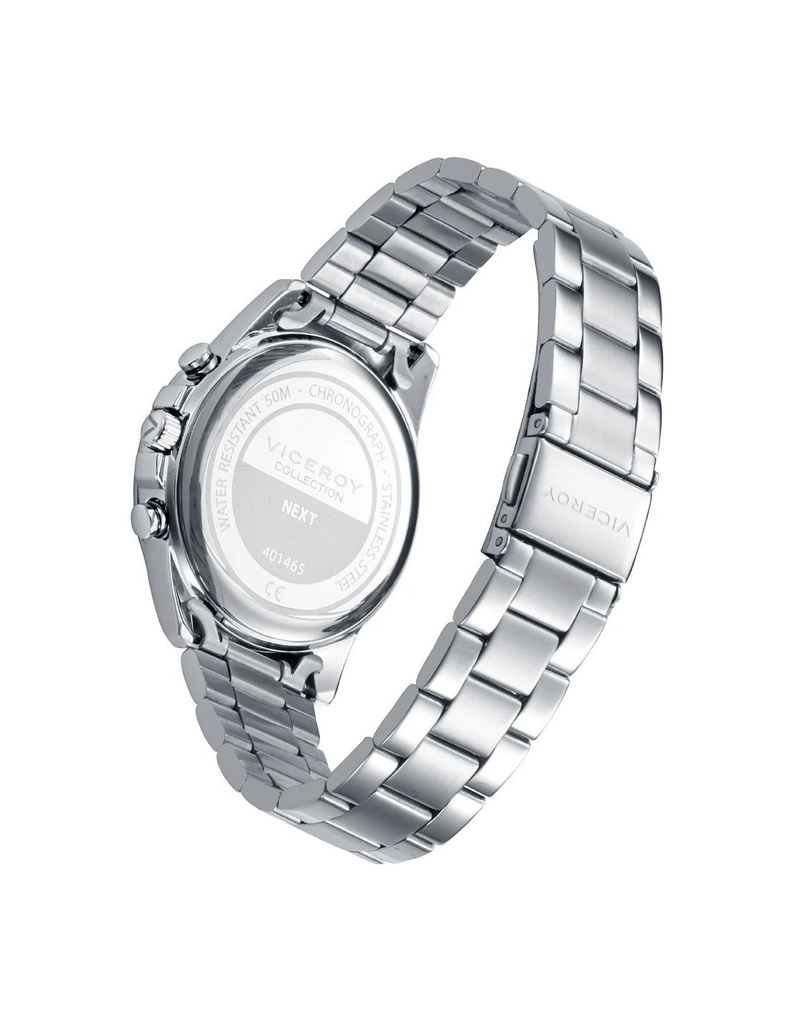 Se trata de un reloj analógico con caja redonda de acero inoxidable color plateado. La caja del reloj tiene un diámetro de 36 mm. Cristal mineral y movimiento cronógrafo de cuarzo. Pulsera de acero con broche desplegable. Tiene una resistencia al agua de 50 metros (5ATM). Cuenta con la garantía oficial Viceroy de 24 meses. Se entrega con su caja oficial.