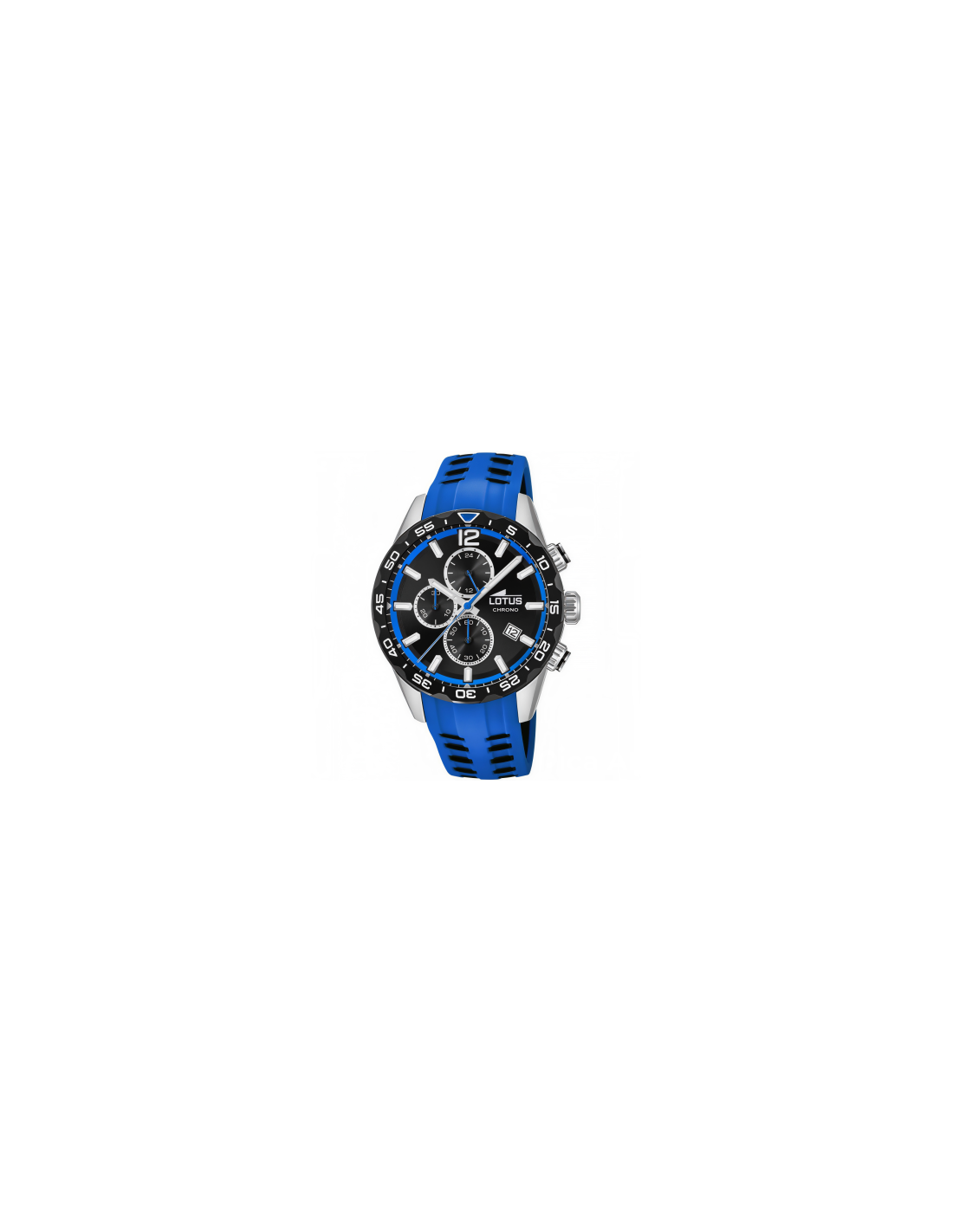 Reloj para hombre fabricado en acero marca Lotus colección Chrono. Se trata de un reloj analógico con caja redonda de acero inoxidable y correa de caucho.